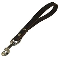 This is a leather short handled leash with stainless steel clip. It works good. It feels comfortable to hold and the clip is large enough to snap on and off easily yet small enough to snap onto the chain links of my leash. It looks and feels well made.